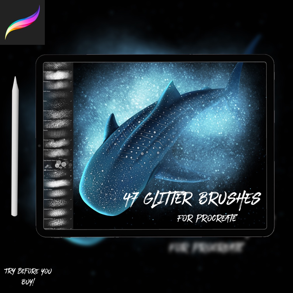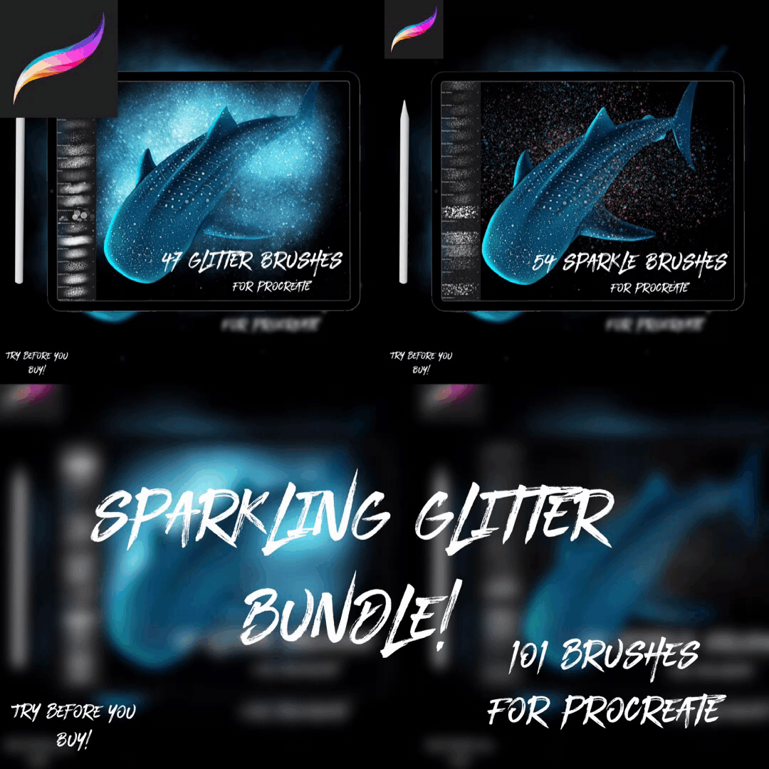 Free Glitter & Sparkle Brushes for Procreate (only one free set, containing brushes from both versions)